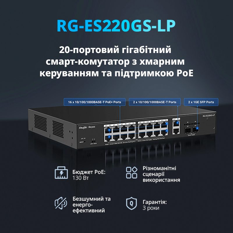 Опис про Комутатор Ruijie Reyee RG-ES220GS-LP