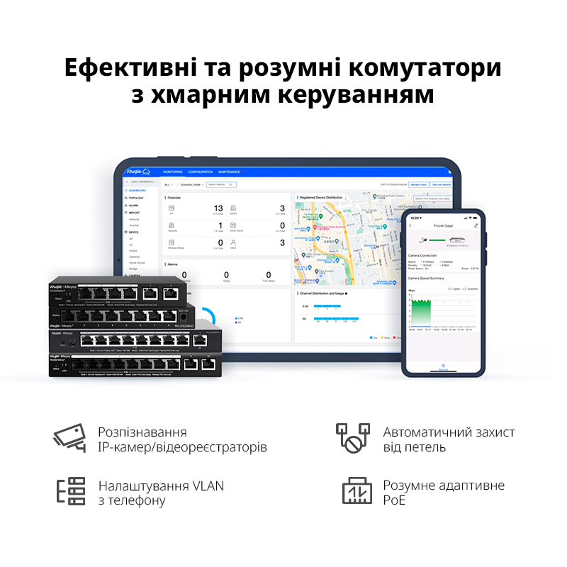 Це гігабітний комутатор з підтримкою технології PoE (Power over Ethernet), створений спеціально для малого та середнього бізнесу (SMB). Комутатори серії ES200 використовують спрощену систему хмарного керування. Завдяки цьому вони працюють швидше, підтримують більше функцій та пропонують вигідне рішення для вашого бізнесу.