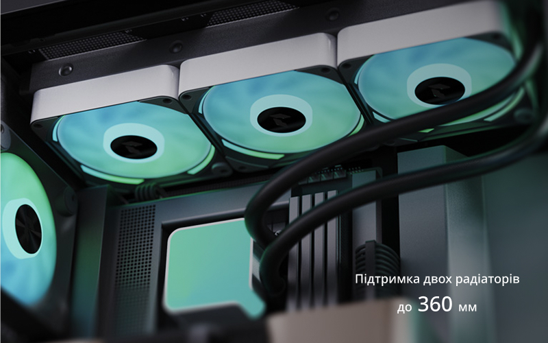 C1-R відкриває розширений потенціал для встановлення систем рідинного охолодження: верхні та бокові радіатори до 360 мм дозволяють створити потужну й ефективну систему охолодження,а також дає змогу встановити водяне охолодження не лише для процесора, а й для відеокарти. Ваш ПК зберігатиме стабільно низькі температури навіть під інтенсивним навантаженням.