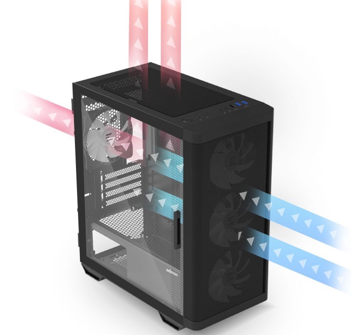 Корпус Zalman M4 Black отримав повністю сітчастий дизайн фронтальної частини, що гарантує ефективне надходження повітря та сприяє зниженню температури внутрішніх компонентів. Така конструкція не лише підвищує вентиляційні можливості, але й забезпечує стильний вигляд.