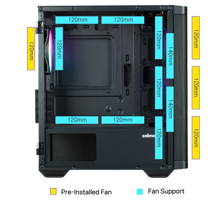 Zalman M4 Black має відмінну сумісність із сучасними комплектуючими. Усередині передбачено місце для блоку живлення довжиною до 140 мм, процесорного кулера висотою до 157 мм та відеокарт довжиною до 320 мм.