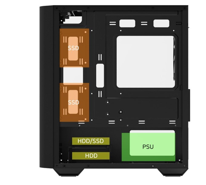 Корпус підтримує формати mATX та Mini-ITX, завдяки чому підходить для складання компактних, але потужних систем. Незважаючи на невеликий розмір, він здатний вмістити більшість сучасних комплектуючих.