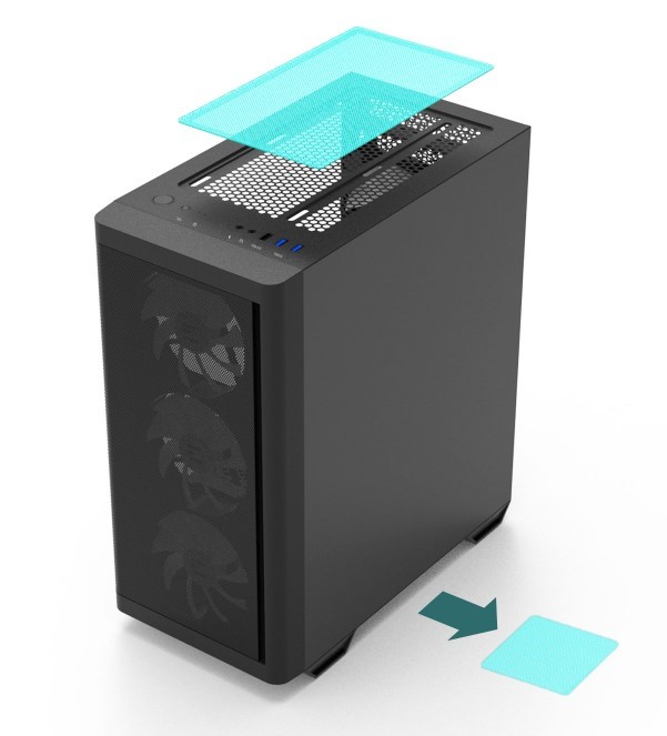 Магнітний пиловий фільтр зверху корпусу та додатковий нижній фільтр забезпечують захист компонентів від пилу, при цьому не перешкоджаючи циркуляції повітря. Фільтри легко знімаються та очищаються, що спрощує догляд за системою.