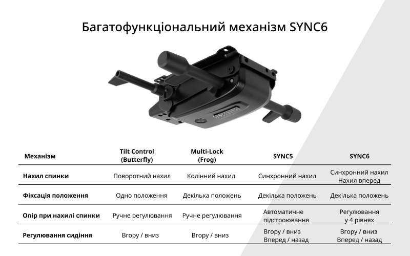 Багатофункціональний механізм SYNC6. Шість рівнів досконалого комфорту.