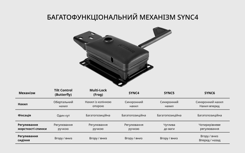 Багатофункціональний механізм Sync4. Чотири рівні точного налаштування комфорту