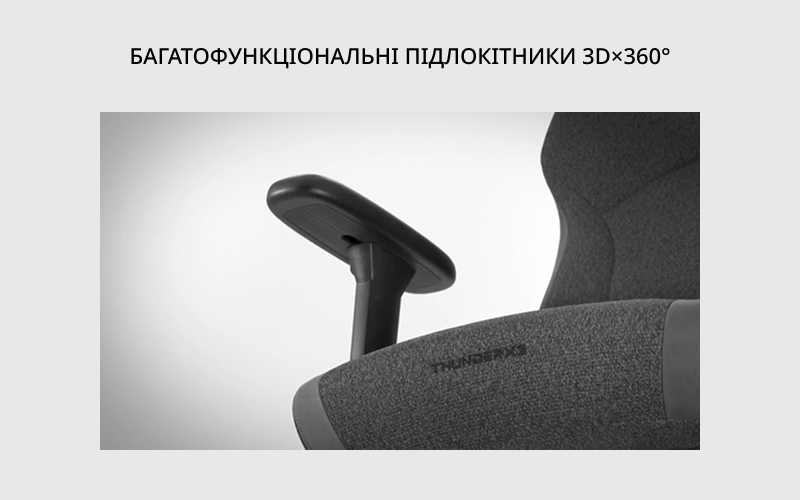 Інноваційні підлокітники легко налаштовуються під положення ваших рук. Вони регулюються вгору та вниз, вперед і назад, а також обертаються на 360°, допомагаючи знайти максимально зручну позицію та зменшити напруження у верхній частині тіла.