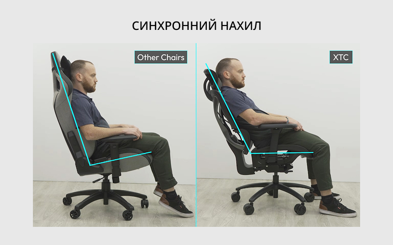 XTC самостійно підлаштовується під Вашу позу та особливості тіла. Коли Ви відкидаєтеся назад у режимі відпочинку, поперекова підтримка охоплює нижню частину спини, знімаючи напругу та даруючи відчуття повного розслаблення.