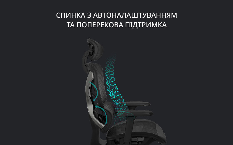 Спинка з автоналаштуванням та поперекова підтримка. Секційна підтримка вашого хребта