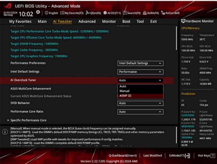 ASUS Enhanced Memory Profile III (AEMP III) – це сучасна функція, реалізована на рівні BIOS, яка дозволяє досягти неперевершеної продуктивності з найсучаснішими модулямипам’яті CUDIMM.
