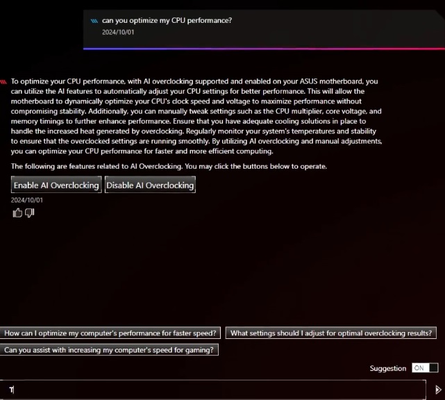 Використовуючи технологію штучного інтелекту для розуміння запитань природною мовою або опису сценаріїв, ASUS AI Advisor дає змогу користувачам вивчити функціональність і розширені можливості материнських плат ASUS у простій і зрозумілій формі.