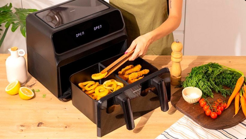 CECOTEC Cecofry Advance 9000 Window - це багатофункціональна аерофритюрниця нового покоління, створена для швидкого та здорового приготування їжі. Модель оснащена містким 9-л кошиком, знімною перегородкою та фірмовою технологією циркуляції гарячого повітря PerfectCook, що дозволяє готувати улюблені страви з мінімальною кількістю олії, зберігаючи смак і текстуру продуктів.