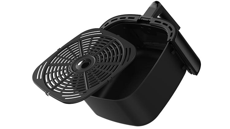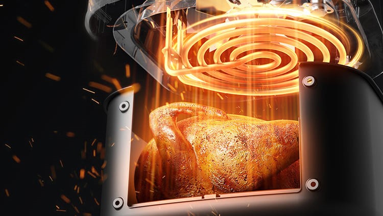 Deerma KZ150 використовує вдосконалену систему циркуляції повітря, яка охоплює продукти з усіх боків і забезпечує рівномірне приготування без пересушування або підгоряння. Потужний 11-лопатевий вентилятор генерує швидкі потоки повітря, що дозволяє обробляти навіть великі порції рівномірно. Датчик NTC контролює температуру в реальному часі, а двошарові канали направляють тепло до дна камери для повного прогріву інгредієнтів. Антипригарне деко гарантує легке приготування без прилипання, а циклонна основа прискорює нагрів і створює тривимірну циркуляцію гарячого повітря для хрусткої скоринки і соковитості всередині.