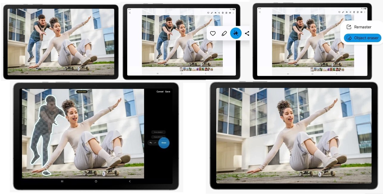 Планшет також дозволяє редагувати фото одним рухом: обведіть непотрібний об’єкт S Pen — і він зникне без сторонніх програм. Це робить процес створення контенту простим і зручним.