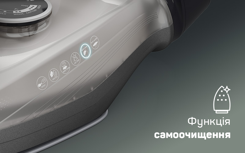 Функція самоочищення використовується для видалення накипу та інших забруднень із внутрішніх частин праски. Це допомагає підтримувати оптимальну ефективність праски та подовжує її термін служби.