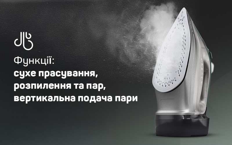 Функції: сухе прасування, розпилення та пар, вертикальна подача пари