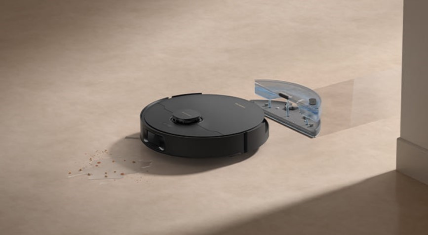 Завдяки резервуару на 350 мл та 32 рівням подачі води, робот адаптує вологе прибирання під тип забруднення. Він одночасно справляється з пилом та плямами, залишаючи підлогу чистою та свіжою.
