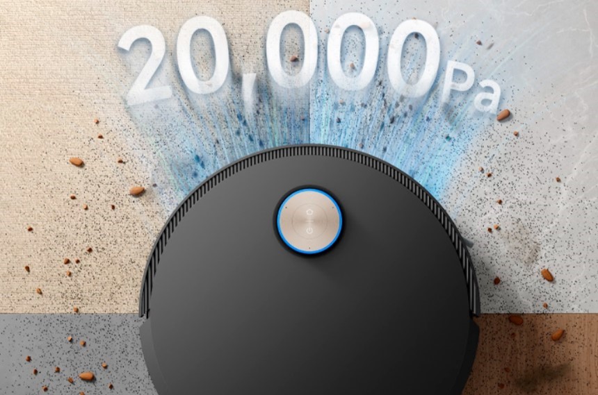 Високошвидкісний двигун на 90000 об/хв забезпечує потужність всмоктування до 20000 Па за технологією Vormax. Робот легко витягує пил і сміття з глибоких щілин у ламінаті, плитці або килимів із довгим ворсом, при цьому рівень шуму залишається низьким завдяки оптимізованому потоку повітря.