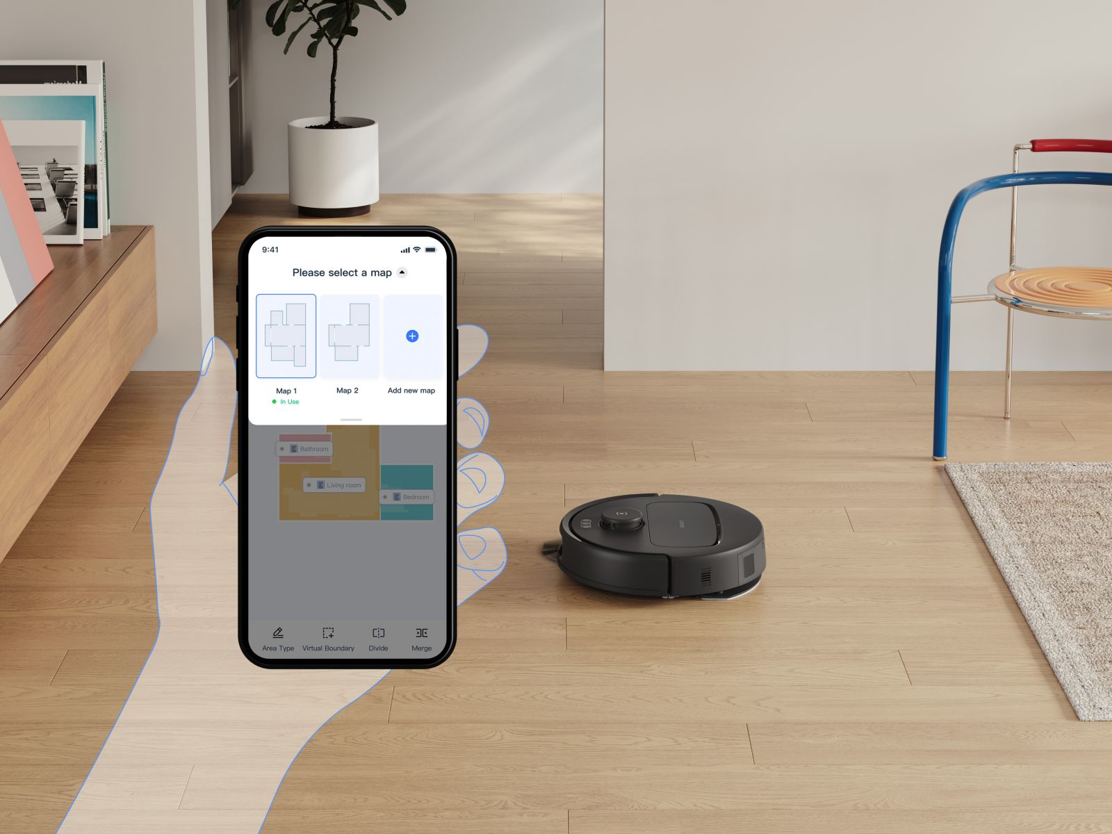 Запускайте прибирання всієї оселі або відновіть попередні завдання за допомогою простих команд у мобільному застосунку. Робіть це використовуючи віджети на смартфоні та керуйте роботом пилососом одним дотиком зі зворотним зв'язком у реальному часі.