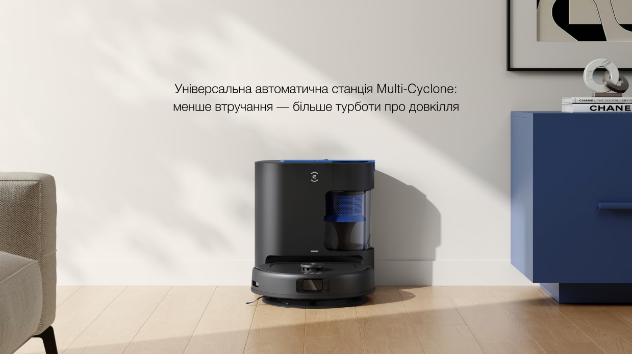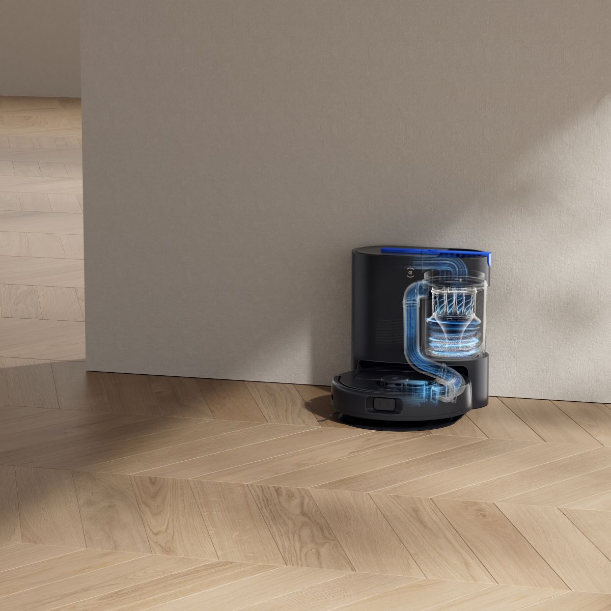 Універсальна автоматична станція Multi-Cyclone використовує технологію ECOVACS PureCyclone з 4-ступеневою системою фільтрації. DEEBOT N20e Plus працює без змінних мішків, зберігаючи стабільну ефективність збору пилу та потужність всмоктування.