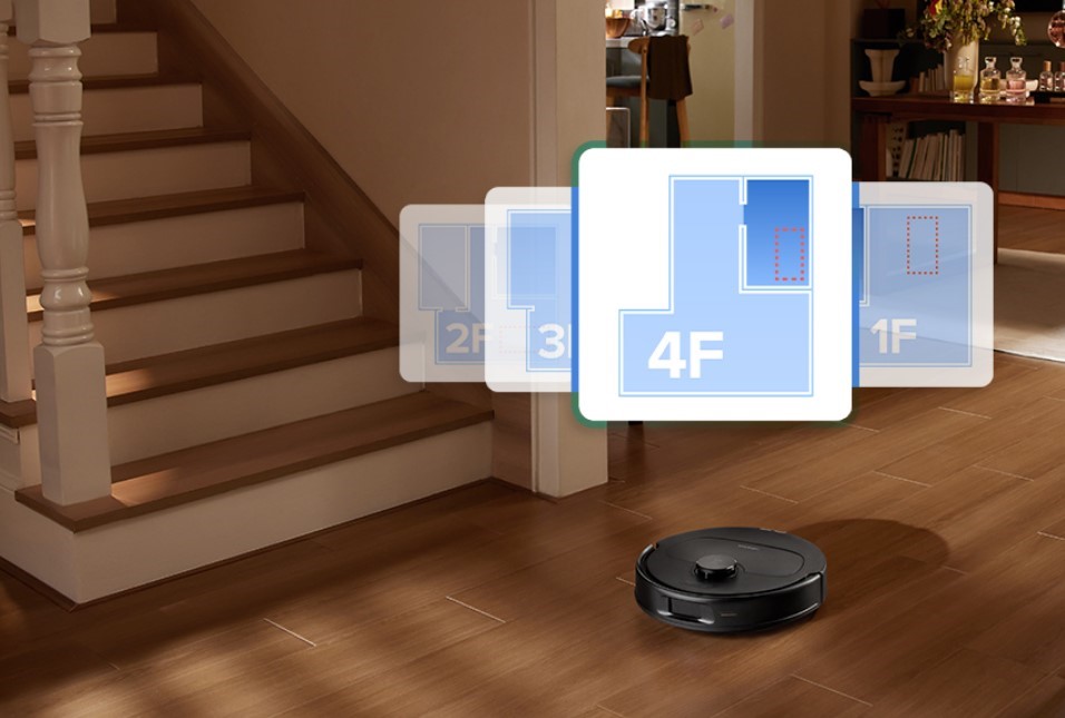 Це робить його зручним рішенням для великих квартир або багаторівневих будинків. Додатковий фронтальний сканер допомагає помічати предмети на підлозі — наприклад, взуття, іграшки чи книги — і акуратно їх об’їжджати.