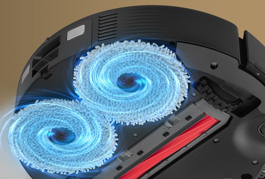 Не менш важливою є система вологого прибирання. Roborock QR 798 оснащений двома ротаційними миючими дисками, які обертаються з високою швидкістю та добре відтирають забруднення з підлоги.