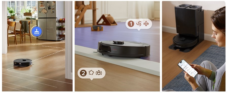 Користувач має можливість розділяти карту на кімнати, встановлювати заборонені зони, змінювати потужність всмоктування або рівень подачі води для різних приміщень. Також можна створити графік роботи за днями та годинами або запустити прибирання в один дотик. Робот підтримує інтеграцію з системами розумного дому та голосовими помічниками.