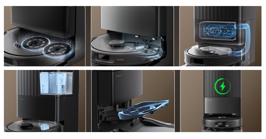 Щоб зробити використання ще простішим, Roborock QR 798 комплектується багатофункціональною базою самообслуговування. Після прибирання робот повертається на станцію, де пил автоматично видаляється з контейнера, миючі насадки промиваються, висушуються теплим повітрям, а резервуар для води поповнюється.