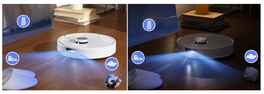 RGB-камера та LiDAR-сенсор дозволяють виявляти до 62 об’єктів у 20 категоріях і будувати оптимальні карти прибирання. Робот безпечно обходить перешкоди та сходи, а небезпечні зони можна позначати як «заборонені», щоб уникнути падінь чи застрягань.