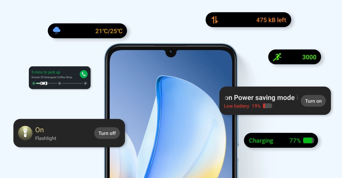 Смартфон має товщину 7,94 мм, що робить його легким і зручним у руці. Компактні розміри та ергономічна форма дозволяють комфортно користуватися Note 70 протягом дня, а сучасний дизайн робить його привабливим і практичним для повсякденного використання.
