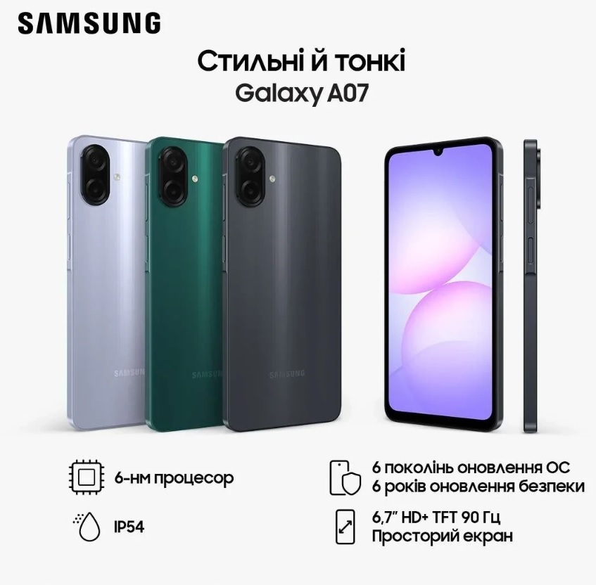 Відгуки покупців про Смартфон Samsung Galaxy A07 SM-A075 4/128GB Light Violet (SM-A075FLVGSEK)