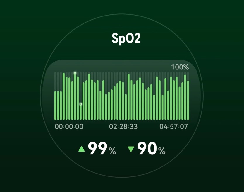 Функція вимірювання SpO₂ дозволяє швидко перевірити стан організму та звернути увагу на дихальну систему.