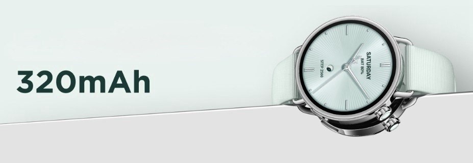 Годинник оснащений акумулятором ємністю 320 мА·год, що дозволяє працювати до 8 днів без підзарядки.