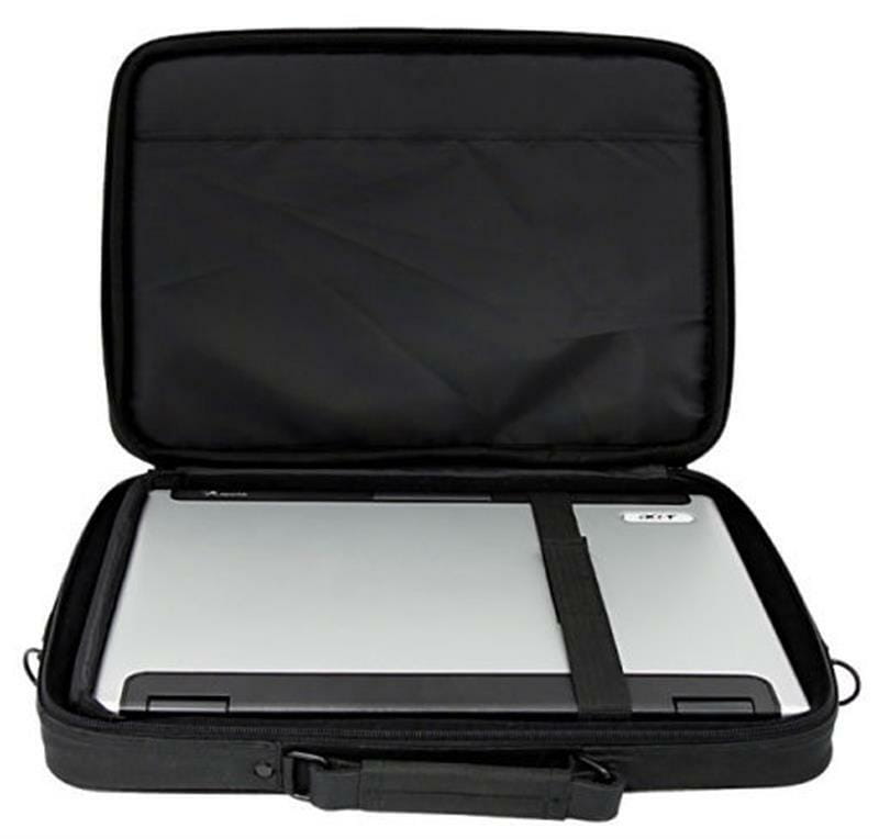 Сумка виготовлена з високоякісного матеріалу. Бічні стінки посилено металевою смугою, а внутрішню поверхню обшито м’яким пінопластовим шаром, який ефективно захищає ноутбук від ударів і подряпин.