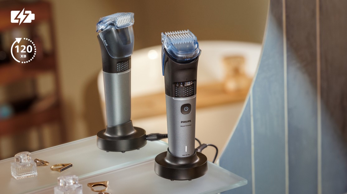 Наш потужний літієвий акумулятор забезпечує до 120 хвилин роботи з можливістю швидкої 5-хвилинної зарядки для якісного підстригання бороди без відволікання. Підставка для заряджання забезпечує зручне заряджання та зберігання вашого пристрою, щоб він завжди був готовий до використання.