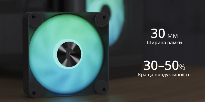 Чудова ефективність охолодження. Вражаюча товщина вентилятора у 30 мм забезпечує приріст потужності охолодження на 30–50% порівняно зі стандартними 25-мм моделями, що гарантує безперебійну роботу ваших компонентів.