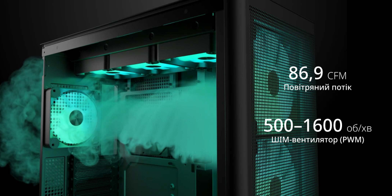 Збільшені лопаті покращують повітряний потік для ефективнішого відведення тепла, занурюючи вашу систему у стан дзен-спокою.