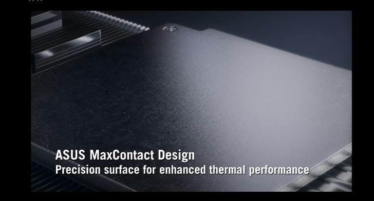 MaxContact – це унікальний технологічний процес у виробництві відеокарт ASUS, який дає змогу збільшити площу контакту між теплорозподільником і графічним процесором на 5% у порівнянні з традиційними рішеннями. Працюючи в поєднанні з масивом радіаторів і потужними вентиляторами Axial-tech, ця технологія дає змогу знизити температуру на додаткових 2°C.