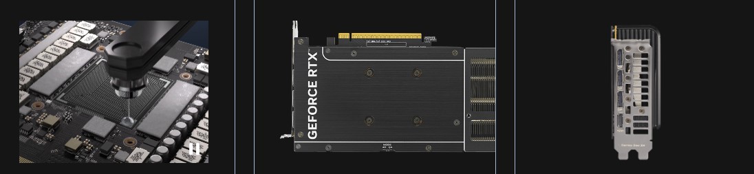 Коли температура графічного процесора опускається нижче 50°С, усі три вентилятори зупиняються, що дає змогу грати в легкі ігри або виконувати нескладні завдання в тиші. Вентилятори запускаються знову, коли температура зростає до 55°С, і працюють згідно з налаштованою кривою швидкості, яка збалансовує продуктивність і характеристики шуму.