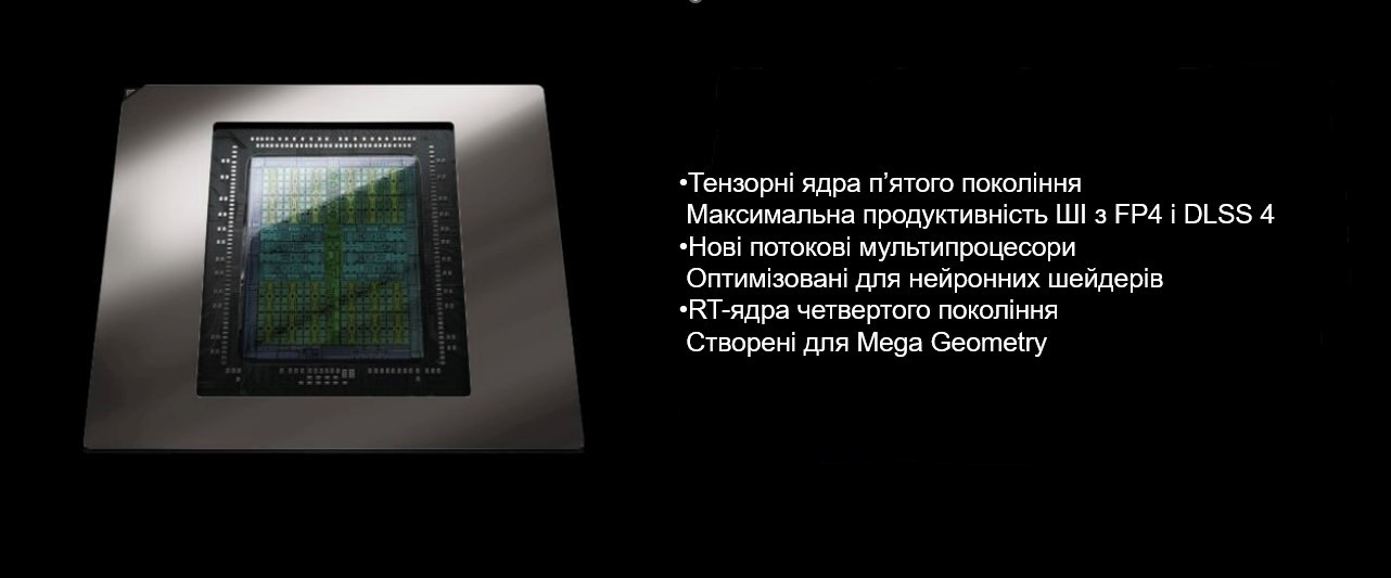 - ШІ для якісної графіки та підвищення продуктивності: NVIDIA DLSS 4 з Multi Frame Generation