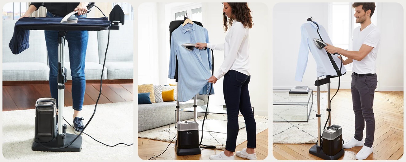Праcувальна дошка Smart Board легко підлаштовується під різні завдання. Дошка має три положення: горизонтальне положення підійде для великих речей і тривалого прасування, вертикальне для відпарювання одягу та під кутом 30° для швидкого освіження перед виходом. Завдяки регульованій висоті робота стає зручною для людей будь-якого зросту.